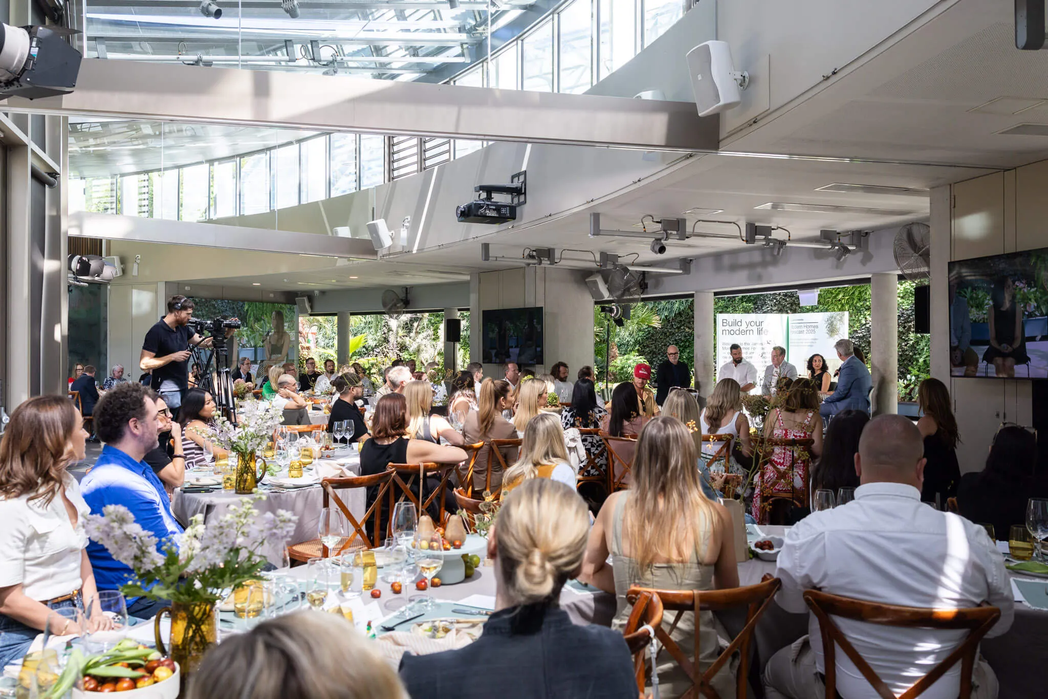 The 2025 James Hardie Modern Homes Forecast set a new benchmark for hybrid events by blending pre-recorded and live content into a seamless, engaging experience. The virtual audience benefited from a polished broadcast, while in-person attendees enjoyed a dynamic and immersive event. By leveraging our studio capabilities and custom-built microsite, James Hardie successfully expanded their reach and delivered an elevated experience for both audiences.