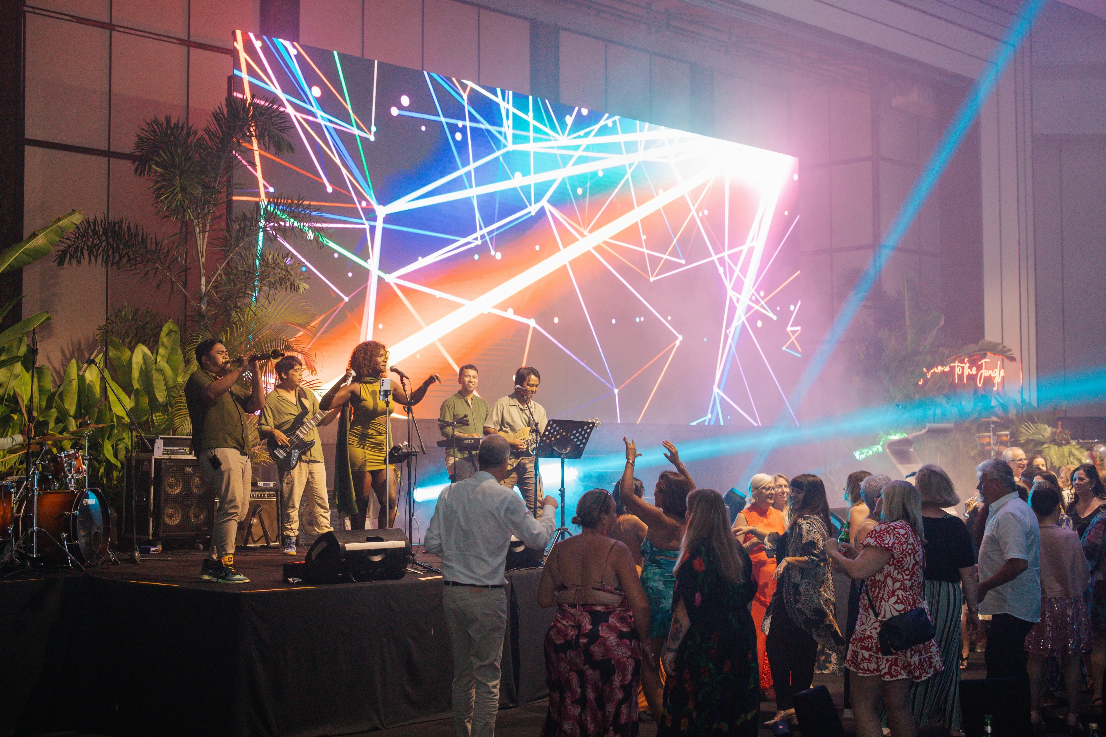 As the theatrette’s had no walls separating them from the event floor, they provided a creative challenge to the team to ensure that the speakers were able to be heard clearly by those in the stage audiences. Due to their open nature we were competing with an extreme level of ambient noise from a lively exhibition space - chatter from those walking around the event, live music, and a roving dj to name just a few.