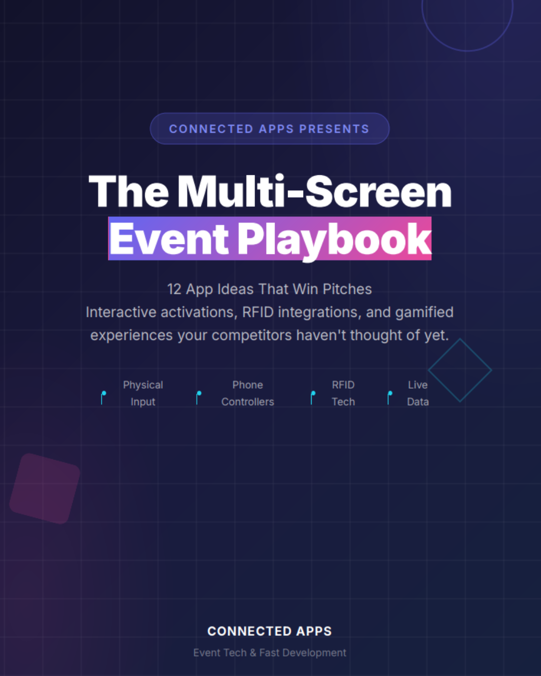 The Playbook features 18 battle-tested app concepts designed to turn ordinary events into unforgettable experiences. From interactive activations and gamified experiences to RFID integrations and second-screen presentations, these ideas are your secret weapon for winning pitches.
