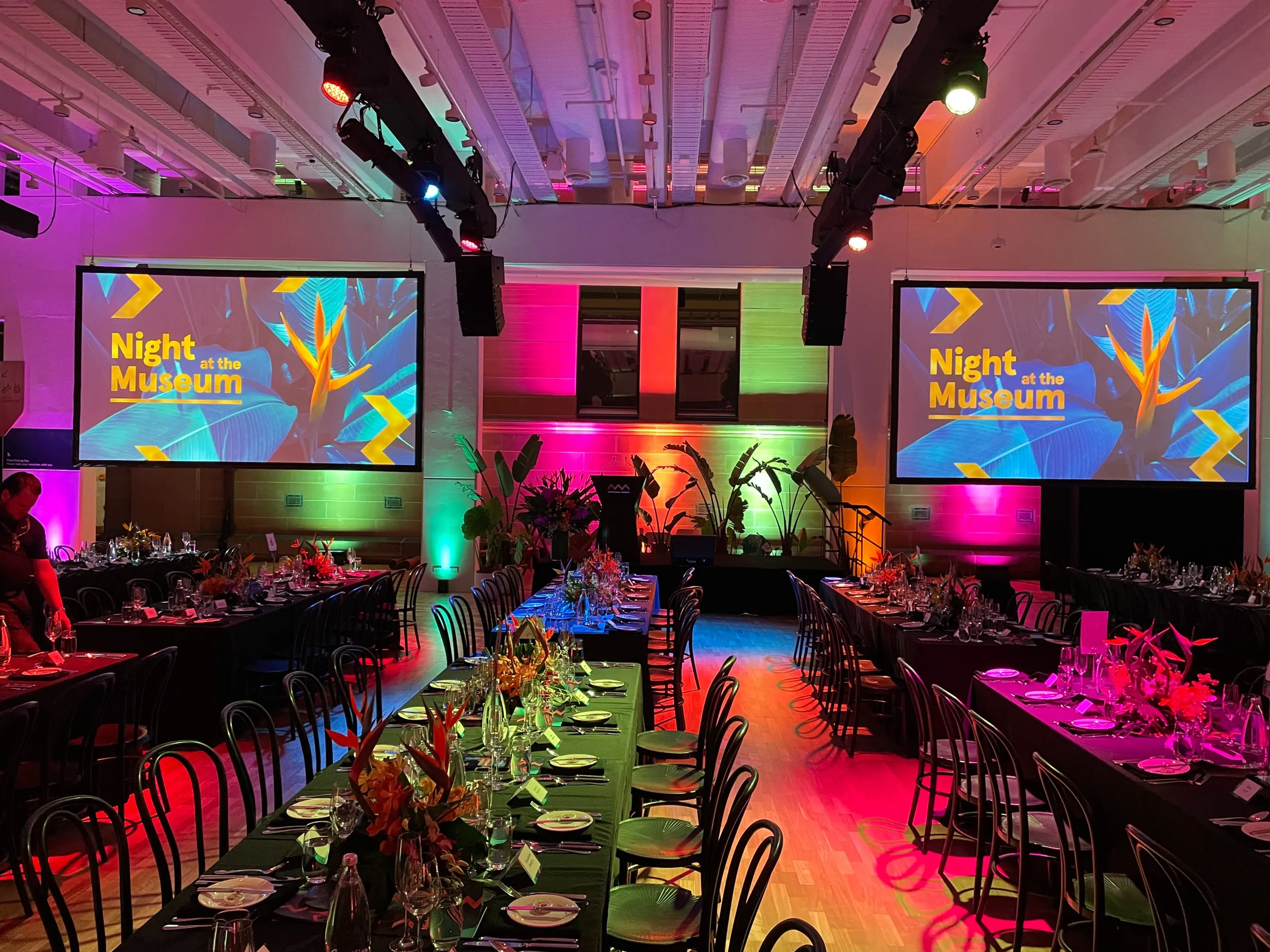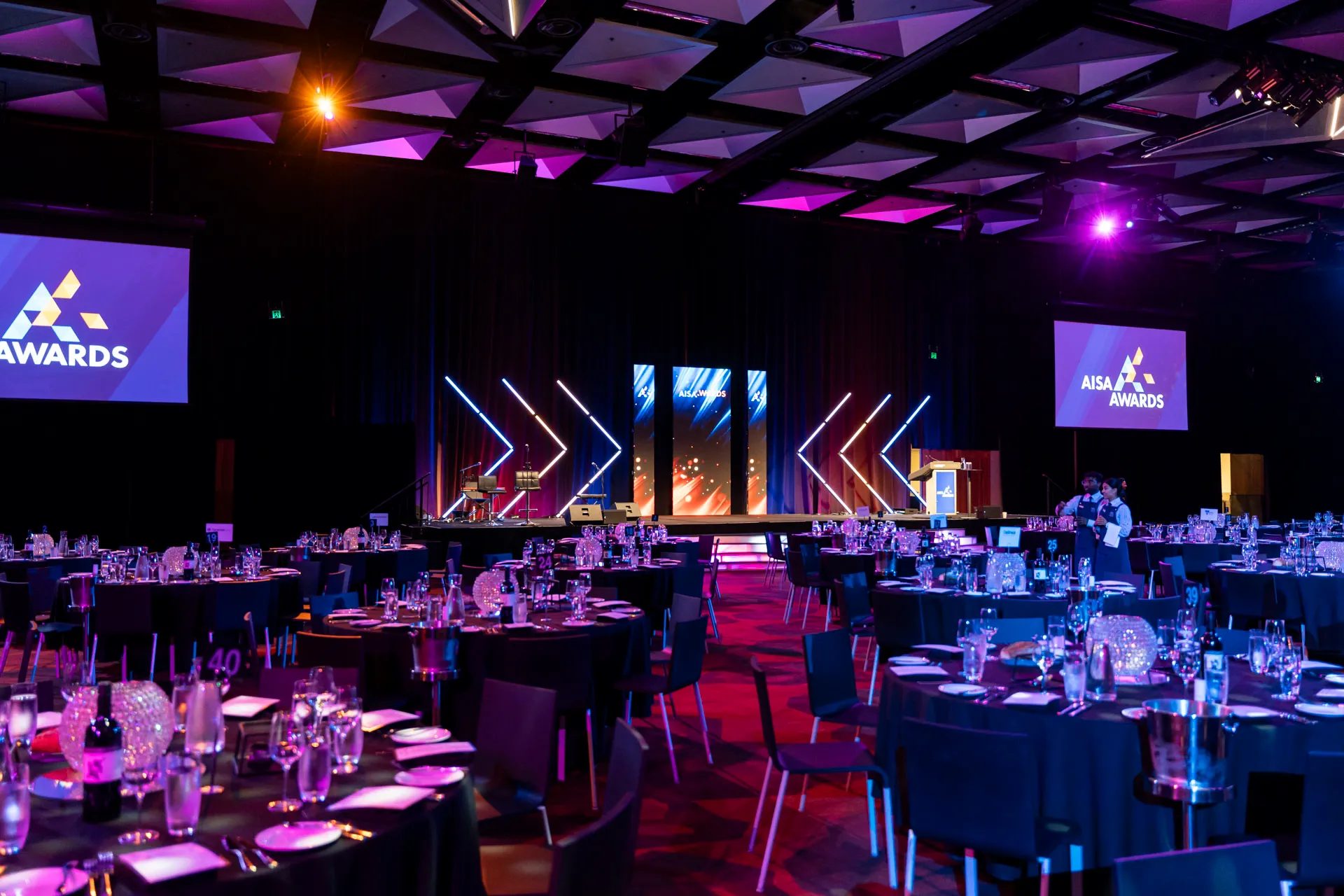 Lighting doesn’t have to be static. We can program the entire venue to subtly shift colour throughout the night, aligning with different segments of the program - from vibrant pre-show hues to cooler tones for presentations, and warm, intimate lighting for dinner or networking. This dynamic approach keeps the space feeling fresh and helps guide the flow of the event.