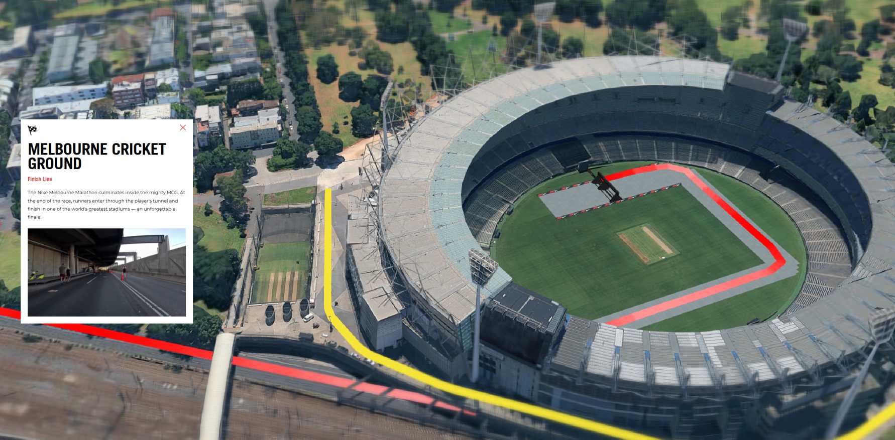 We collaborated with IMG for The Melbourne Marathon, to integrate their interactive marathon map into a touch powered app. The map showcased the full marathon route with interactive checkpoints along the way. Participants could explore the route online, click through checkpoints to reveal promotional videos, photos, and route details - creating an engaging, interactive pre-event experience that extended the excitement beyond race day.