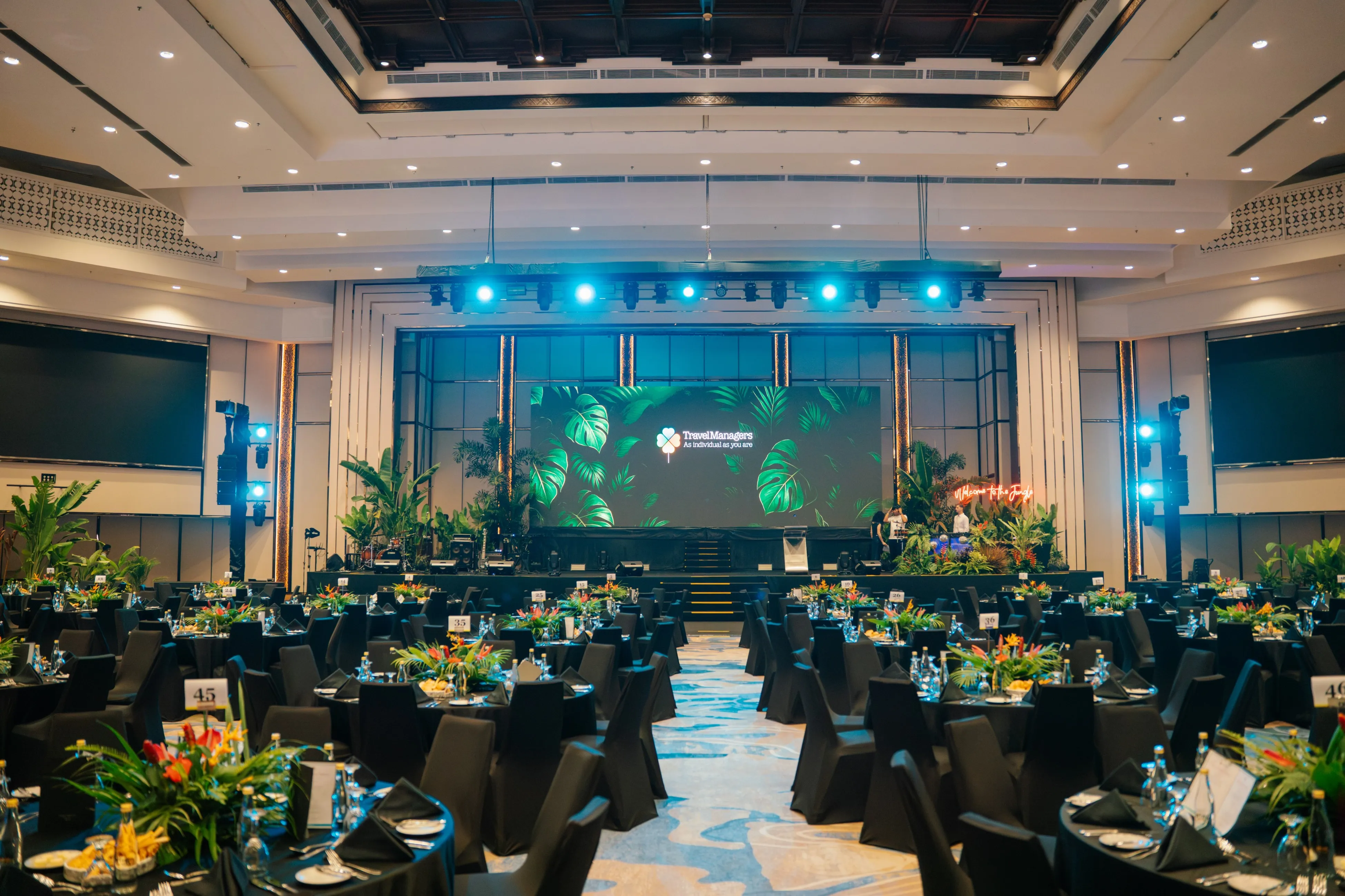 The experience starts at the entrance. Think beyond a basic welcome sign - set the tone with custom LED arches, projection mapping, digital registration kiosks, or a live performance at the entryway. Use lighting and sound to build anticipation before guests even enter the main space.